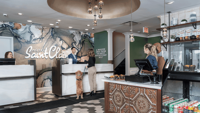 Guests arriving at Hotel Saint Clair are greeted by an eclectic, art-inspired lobby with a vibe that encourages lingering longer. While staying faithful to the original historical architecture of the hotel, we’ve seamlessly incorporated contemporary perks like a state-of-the-art fitness center, craft coffee bar, and refreshed guest rooms.